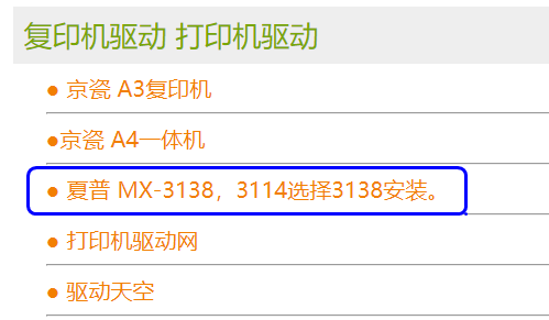 - 由于夏普3114没有中文版的驱动,这里我们用 3138的中文版驱动进行安装。
